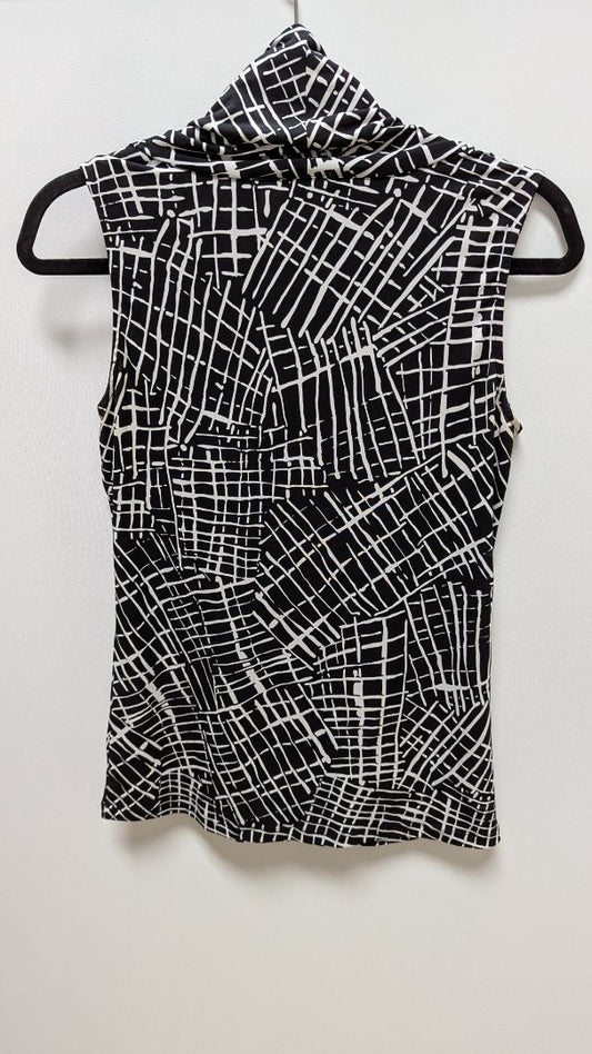 Yvos Black/White Printed Layered Cowl-Neck Blouse