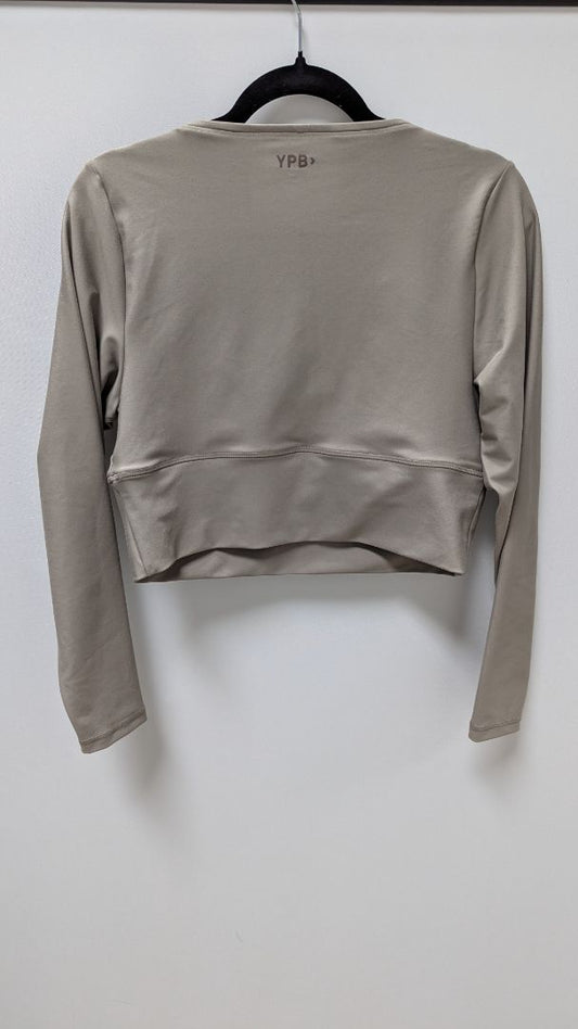 YPB Grey Long-Sleeve 4-Way Stretch Crop Top