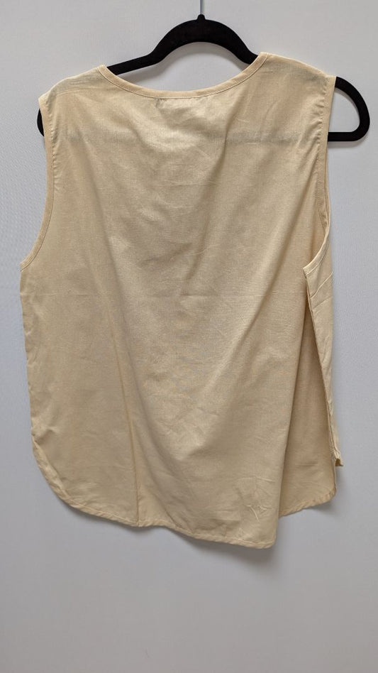 Zanzea Beige Flower Graphic Cotton Sleeveless Blouse
