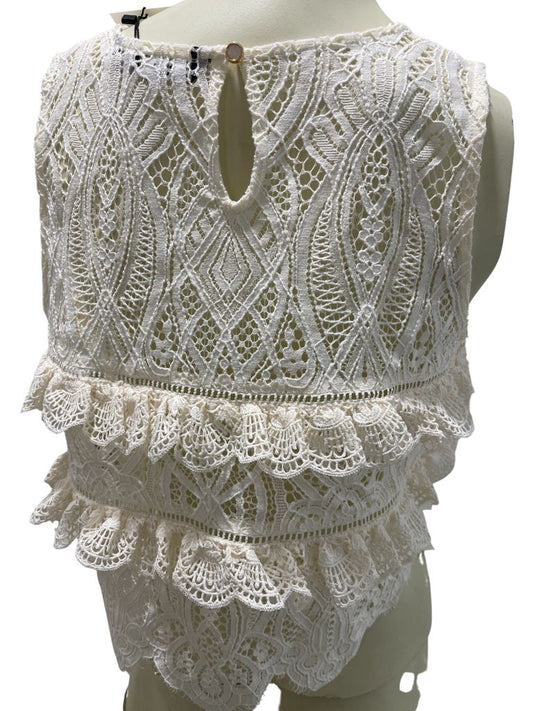 Zara Trafaluc White Floral Cap Sleeve Blouse