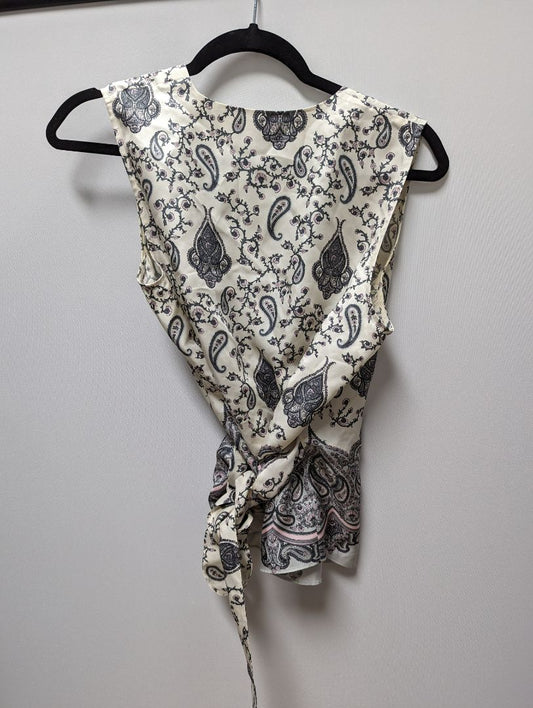 Banana Republic Ivory Patterned Silk Wrap Blouse