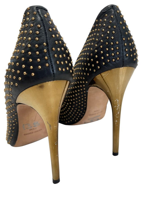 BCBGMAXAZARIA Black/Gold Studded Heels