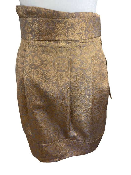 BCBGMAXAZARIA Gold Brocade Pleated Skirt with Pockets