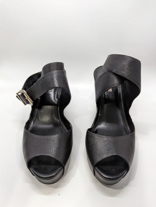 BCBGeneration Black Cross Ankle Strap Wedge Sandals
