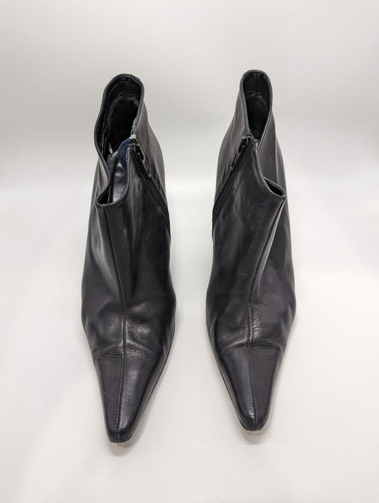 Bebe Black Leather Bootie Heels