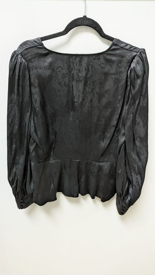 BCBGMAXAZRIA Black Textured Satin Button-Down Blouse