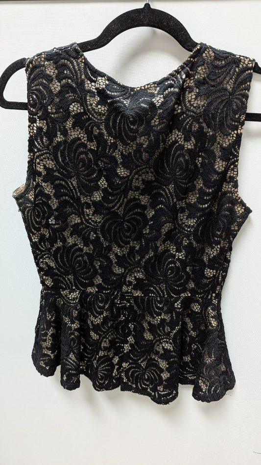 BCBGMAXAZRIA Black/Beige Lace Peplum Blouse