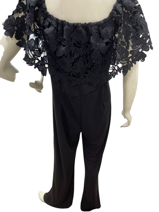Black Jumpsuit with Lace Off Shoulder Top and Wide Leg