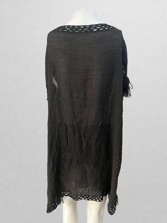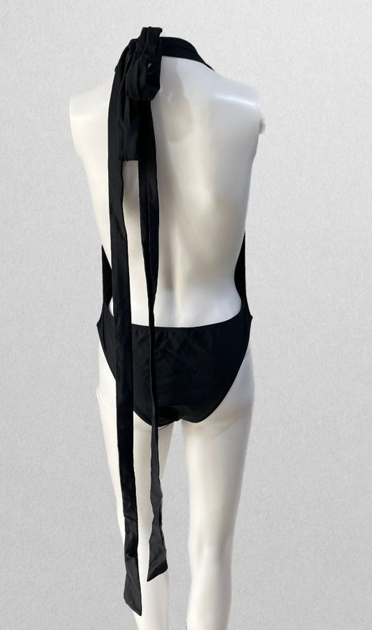 Black High-Waist Criss-Cross Swim Bottom (M)