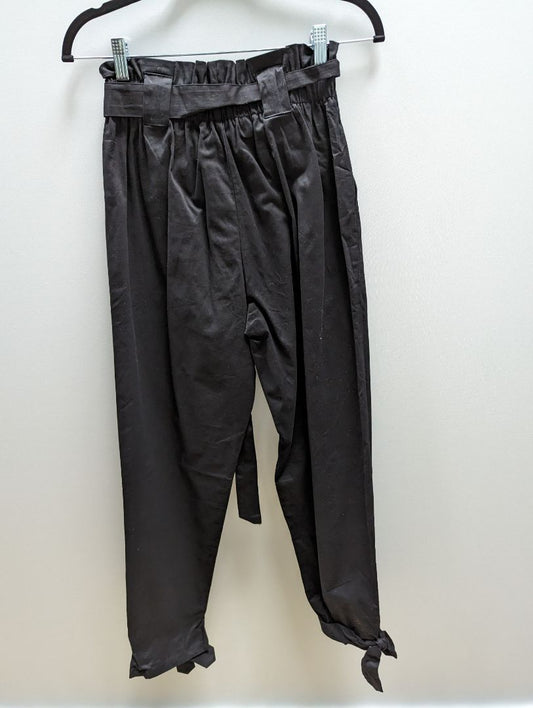 Black Ruffle Tie Waistband and Hem Pants (S)