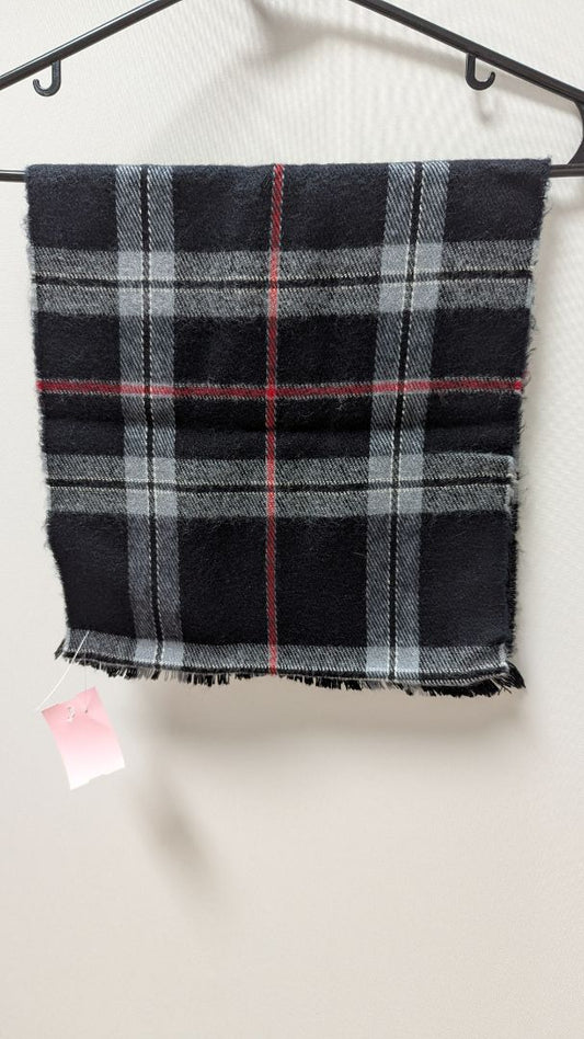 Black/Grey/Red Plaid Knit Fringed Scarf