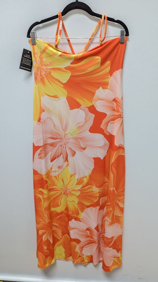 Boston Proper Orange Tropical Brooch Halter-Neck Dress