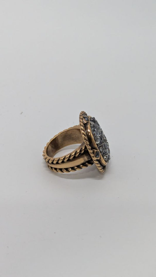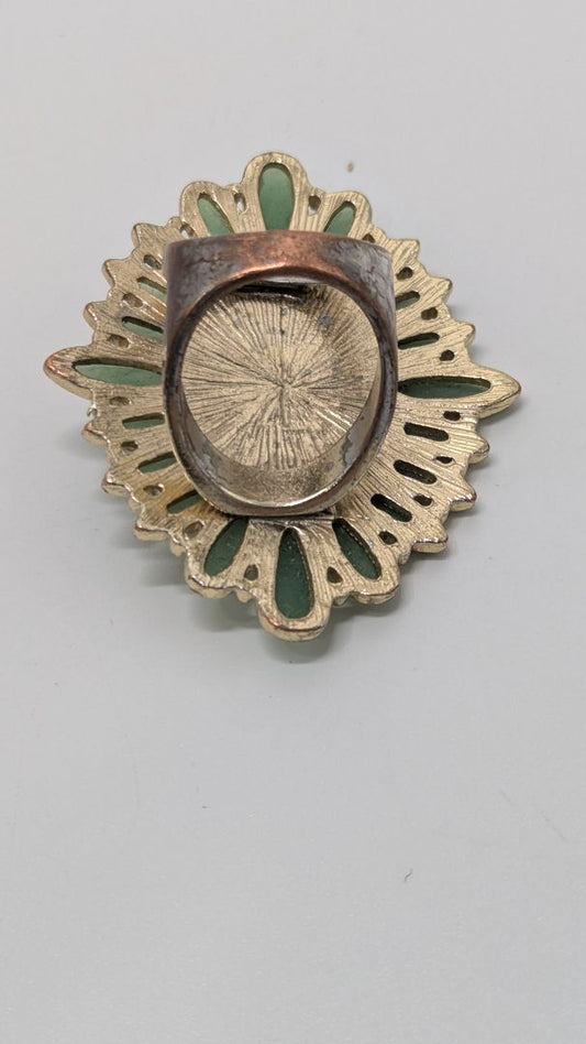 Bronzed Gold/Green Faux Crystal Vintage Ring