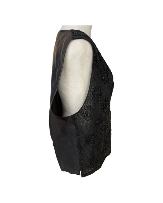 Carole Little Vintage Black Beaded Lace Front Button Vest