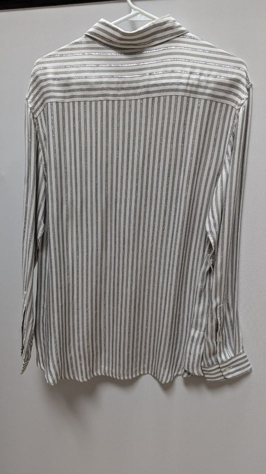 7 for All Mankind Silver Grey Striped Button Up Blouse