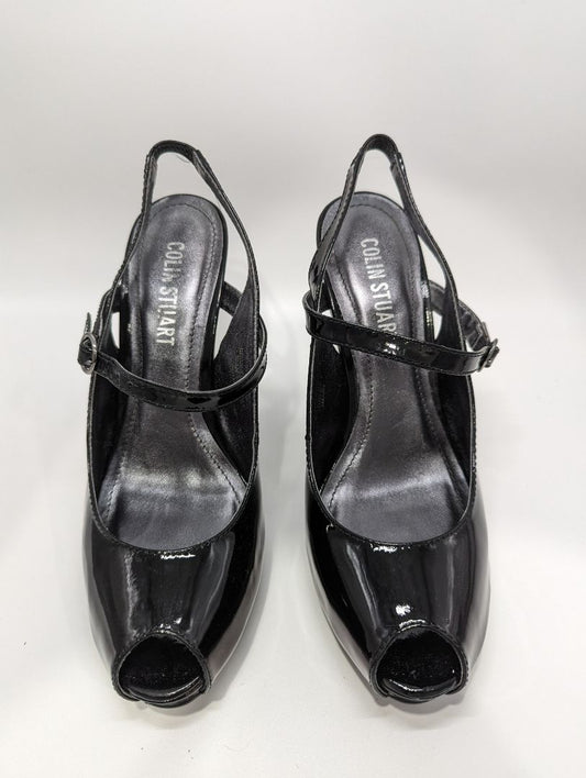 Colin Stuart Black Leather Peep Toe Heels