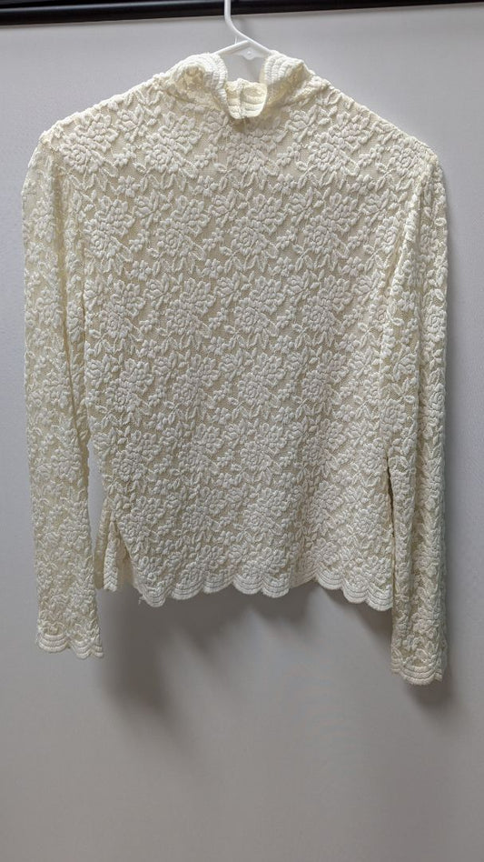 Coldwater Creek White Lace Turtleneck Blouse