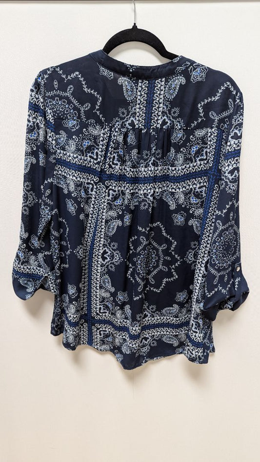 Cocomo Woman Navy Paisley Half-Button-Down Blouse