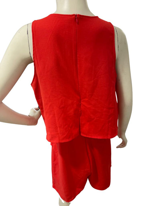 DOLAN Cream/Red Aster Topstitch Linen Skirt