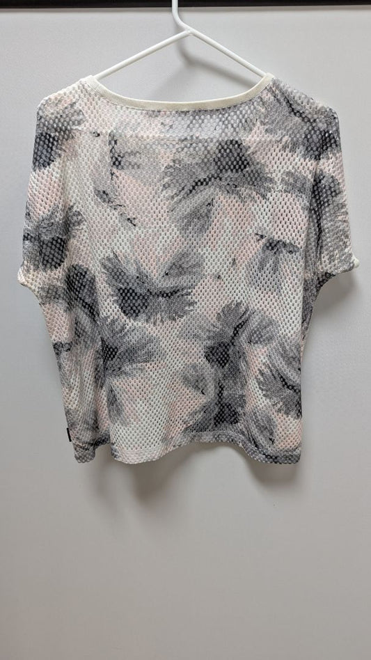Fabletics Grey/Pink Patterned Mesh Cropped T-Shirt