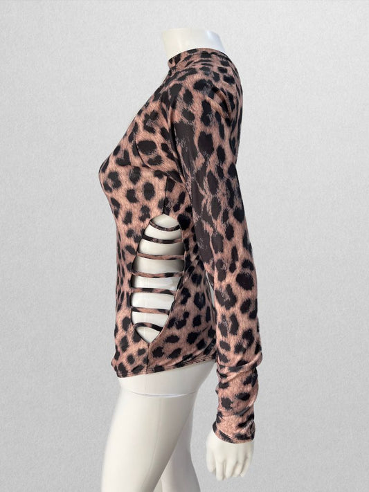 Floerns Women's Long Sleeve Zippered Cutout Leopard One Piece Swimsuit