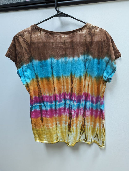 First Love Brown Multicolor Tie Dye V-Neck Tee