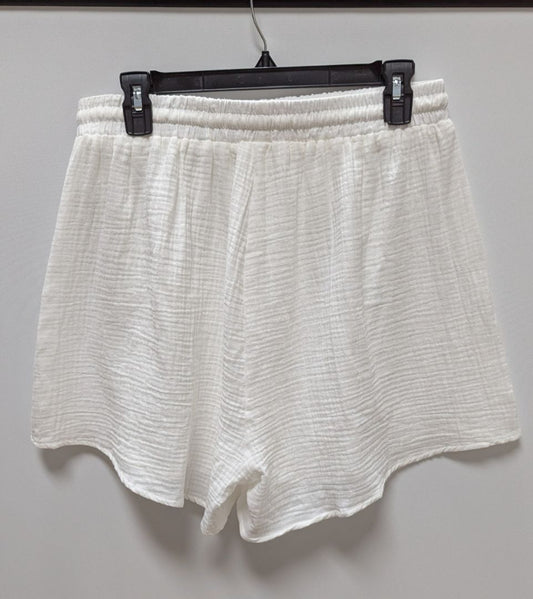Fixmatti White Textured Cotton Drawstring Shorts
