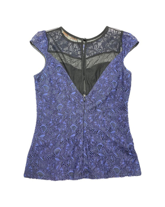 Guess Blue Lace Cap Sleeve Top With Black Accents