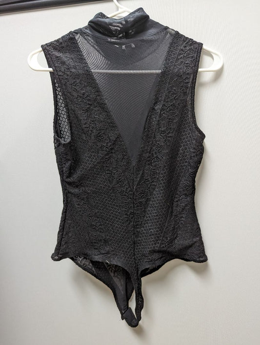 Guess Black Lace Mesh Turtleneck Bodysuit