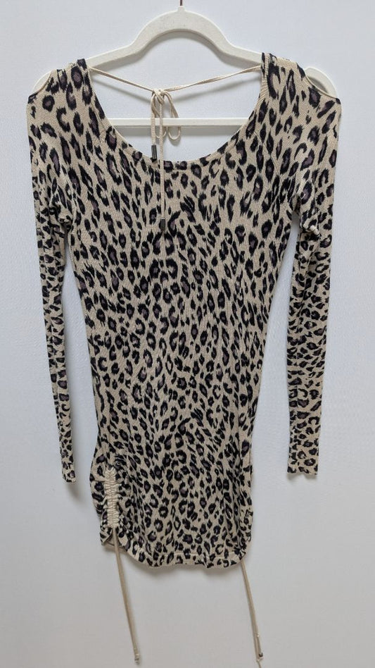 Guess Light Brown Animal Print Drawstring Hem Mini Dress