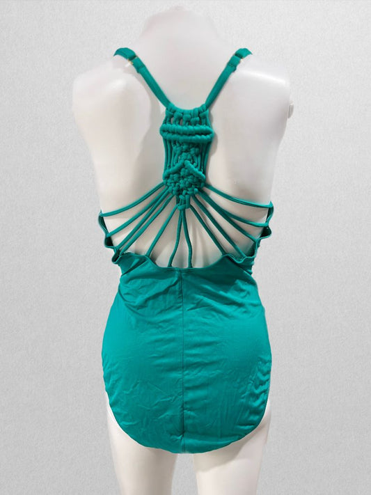 Hilor Teal Macrame Back One-Piece Swimsuit