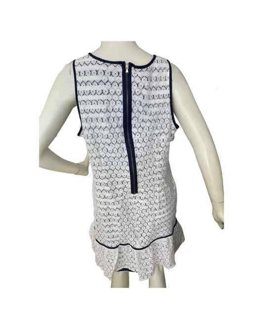 J. Taylor Ivory and Blue Striped Lace Sleeveless Dress