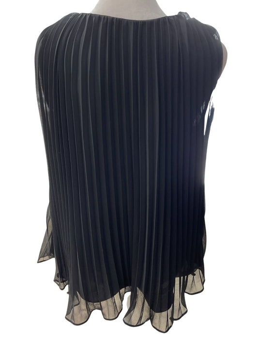 J Crew Women's Black Sleeveless Pleated Georgette Blouse