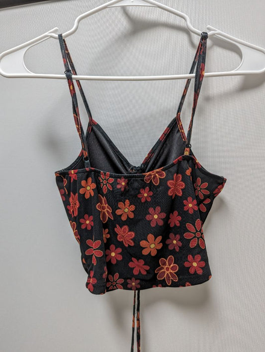 J for Justify Black/Red Floral Ruched Mesh Crop Top