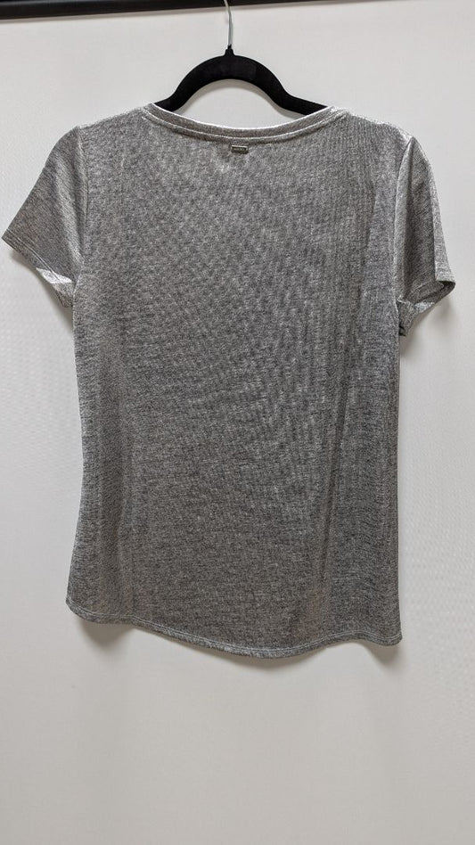 Express Burgundy Lace-Sleeve Button-Down Blouse