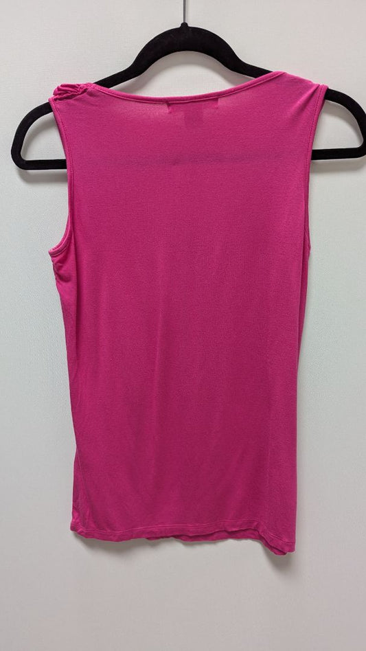 August Silk Pink Ruffled Neckline Sleeveless Blouse
