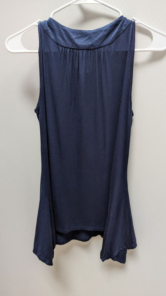 dressbarn Navy Beaded Neckline Sleeveless Blouse