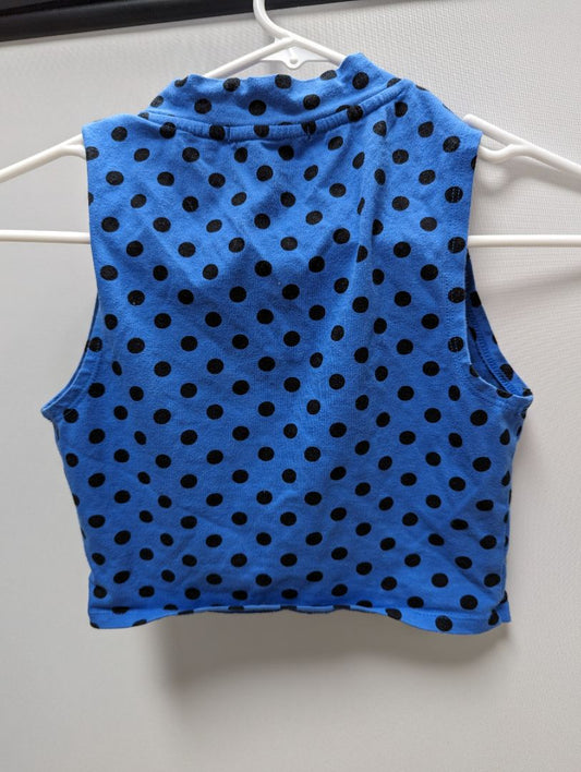 Forever 21 Blue/Black Polka Dot Cropped Sleeveless Turtleneck