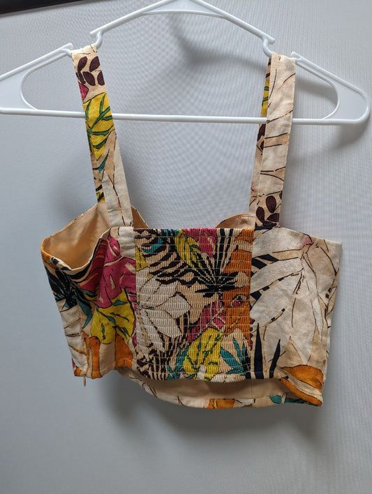 Forever 21 Orange Palm Floral Ruched Crop Top
