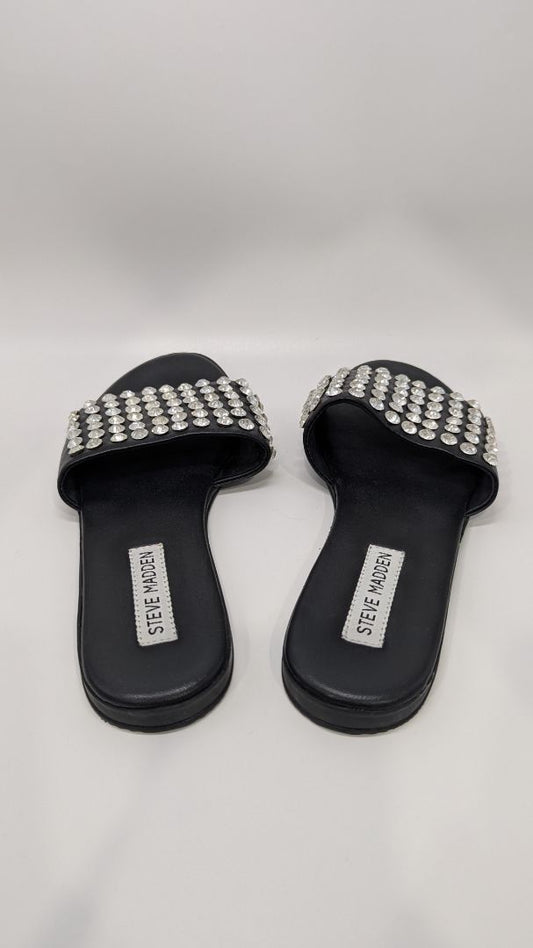 Steve Madden Black Silver Rhinestone Sandals