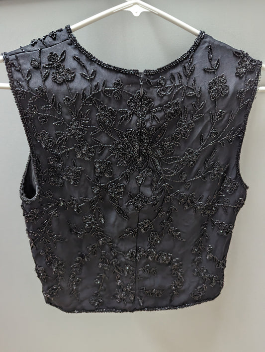 Scala Vintage Black Sequin Short Sleeve Blouse
