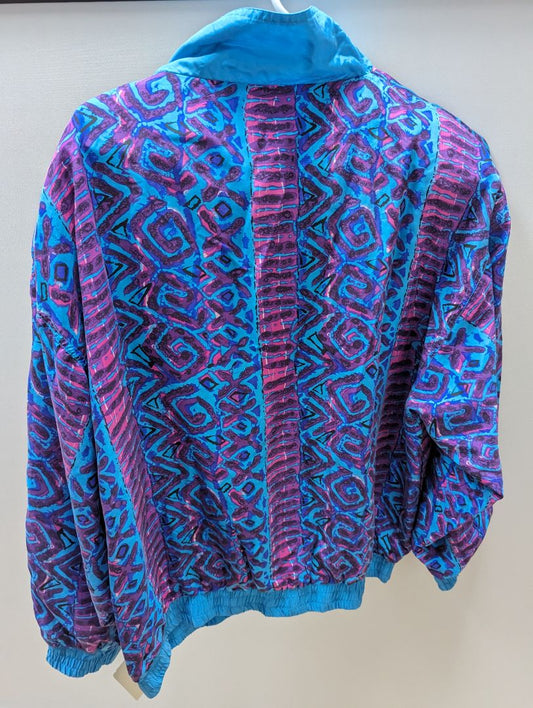 Rhoda Lynne Vintage Silk Turquoise/Purple/Pink Zip Up Windbreaker Jacket (NWT)