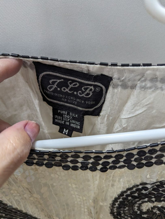 J.L.B. Vintage Ivory/Black Sequin Short Sleeve Blouse