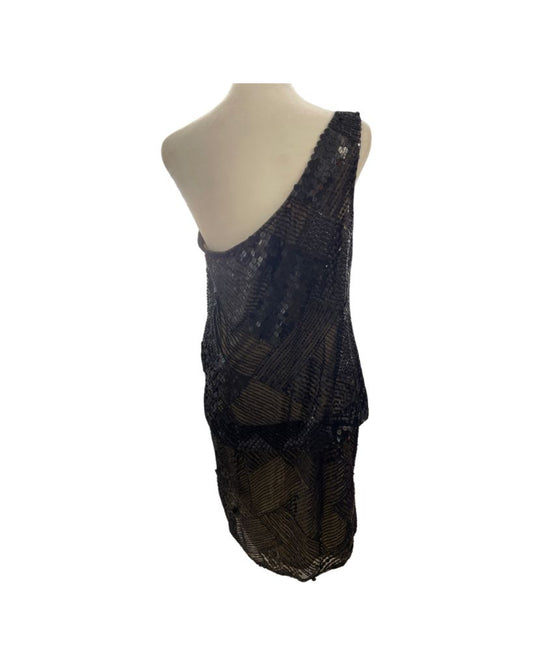 Pisarro Nights Black One Shoulder Beaded Evening Dress