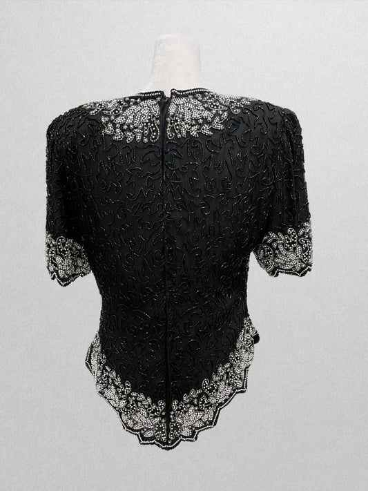 Laurence Kazar Vintage Black Sequin Short Sleeve Blouse