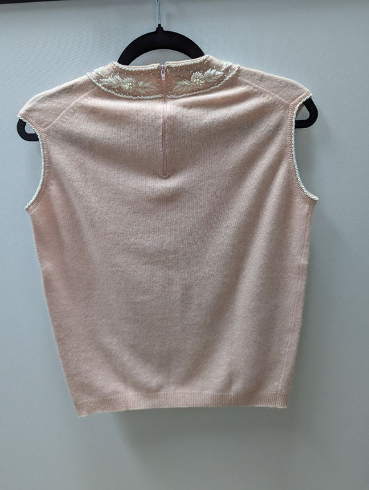 Fully Fashioned Vintage Pink Tank with White Beading