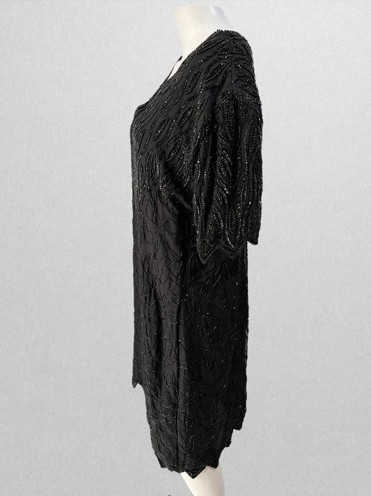 Laurence Kazar Vintage Black Sequin Short-Sleeve Midi Dress