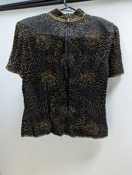 Fuda International Vintage Silk Black Track Jacket with Gold Accents