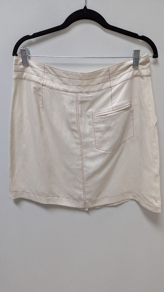 DOLAN Cream/Red Aster Topstitch Linen Skirt