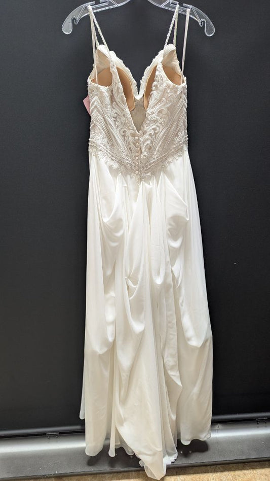 Rebecca Ingram Ivory Lace-Bodice Buttoned Wedding Dress
